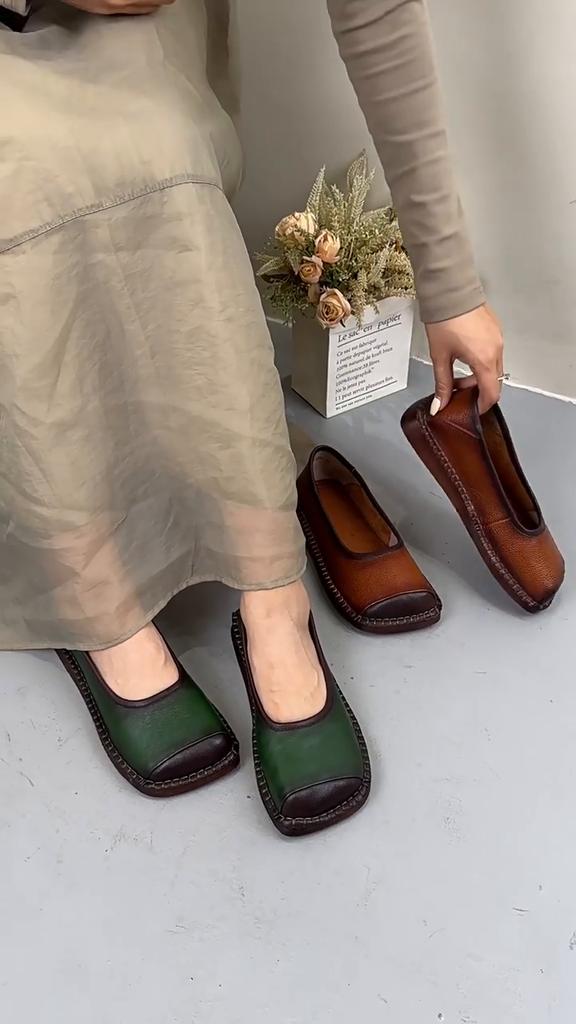 Johnature Лоферы из натуральной кожи в стиле ретро на мелкой плоской подошве. Удобная женская обувь без шнуровки на мягкой подошве с квадратным носком