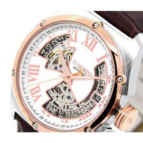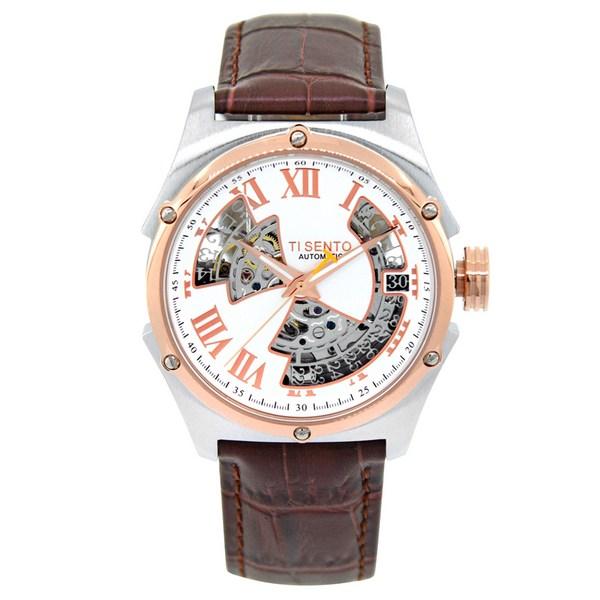 Ticento Мужские автоматические кожаные часы Skeleton TS60031 + сумка для покупок