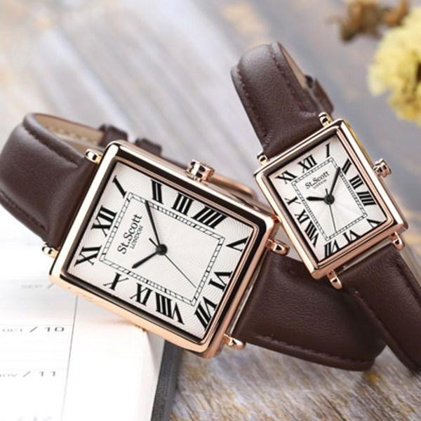 Saint Scott ST5502 Классические унисекс парные легкие квадратные кожаные часы