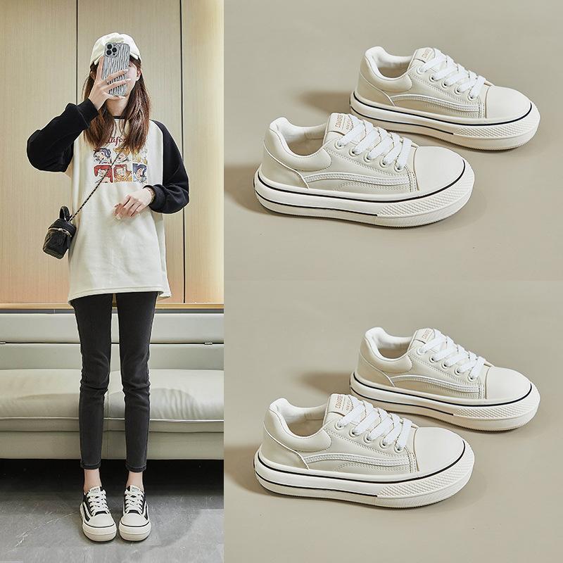 Дизайн с толстой подошвой подчеркнет ваши длинные ноги: если вы хотите выглядеть высоко, вам не обязательно нужны высокие каблуки, вам также подойдет пара белых кроссовок на платформе с высотой каблука 3,5 см, чтобы увеличить высоту повседневной обуви.