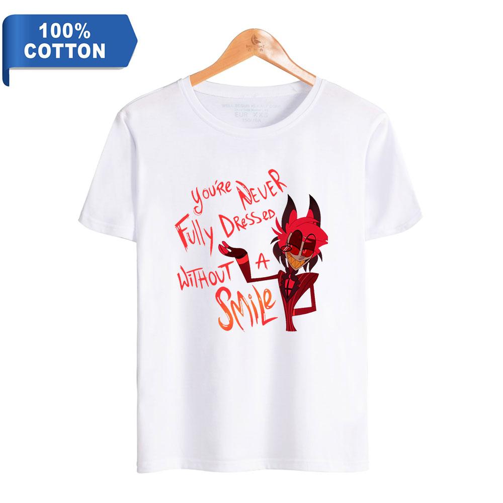 Высокое качество, женская и мужская хлопковая футболка Hazbin Hotel, футболка с принтом, летняя графическая женская и мужская одежда, модные футболки