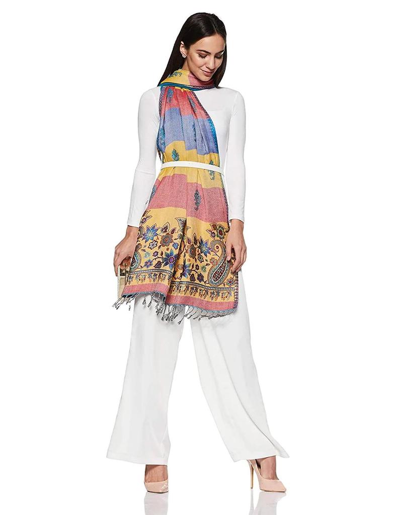 Женская шаль Джамвар с вышивкой пейсли размером 80 x 30 дюймов, шерстяное полосатое одеяло для медитации