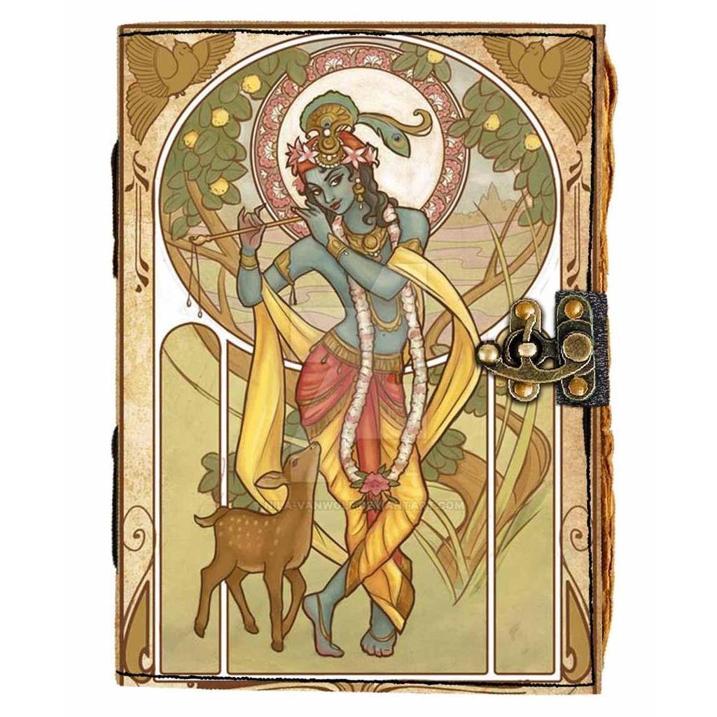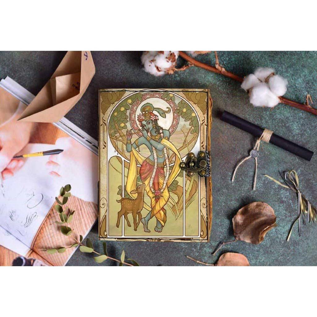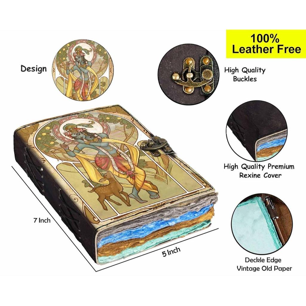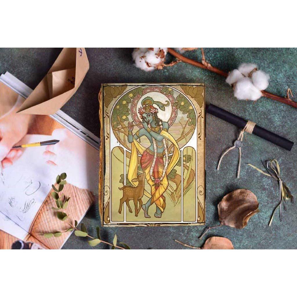 Обложка печатного дневника Шри Кришны, винтажный дневник со старыми страницами для личного и офисного использования (7 х 5 дюймов, многоцветный)