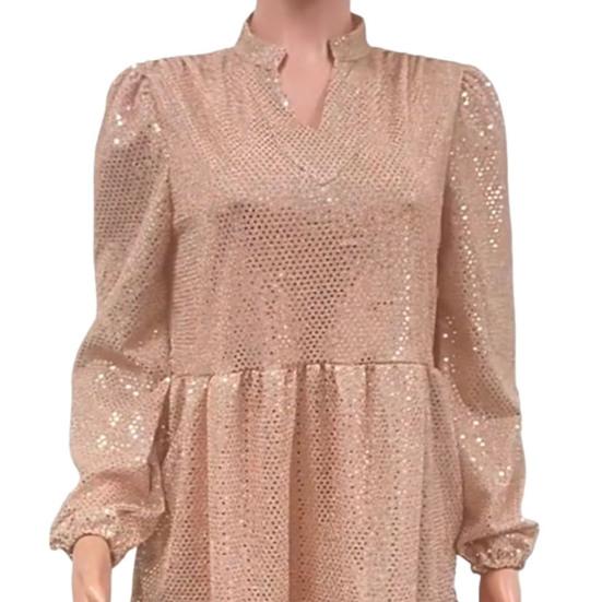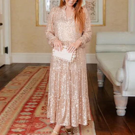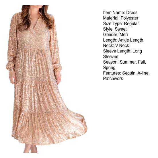 Улучшите свой гардероб этим потрясающим банкетным платьем с V-образным вырезом и длинными рукавами, расшитым пайетками! Это платье, изготовленное из высококачественного полиэстера, обеспечивает повседневный свободный крой, одновременно удобный и стильный.. Мягкая и легкая ткань обеспечивает комфорт в течение всего дня, поэтому ее не захочется снимать.. Однотонный дизайн излучает элегантность и стиль и идеально подходит для различных случаев, таких как повседневная одежда, свидания или работа.