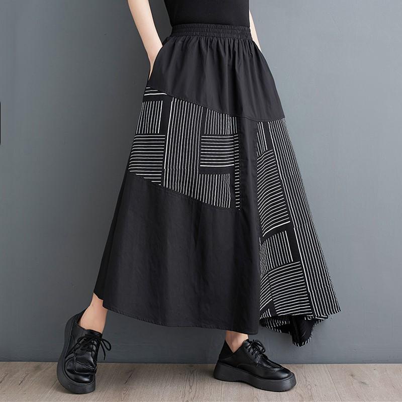 Черная хлопковая юбка больших размеров с высокой талией, летняя повседневная свободная длинная женская юбка