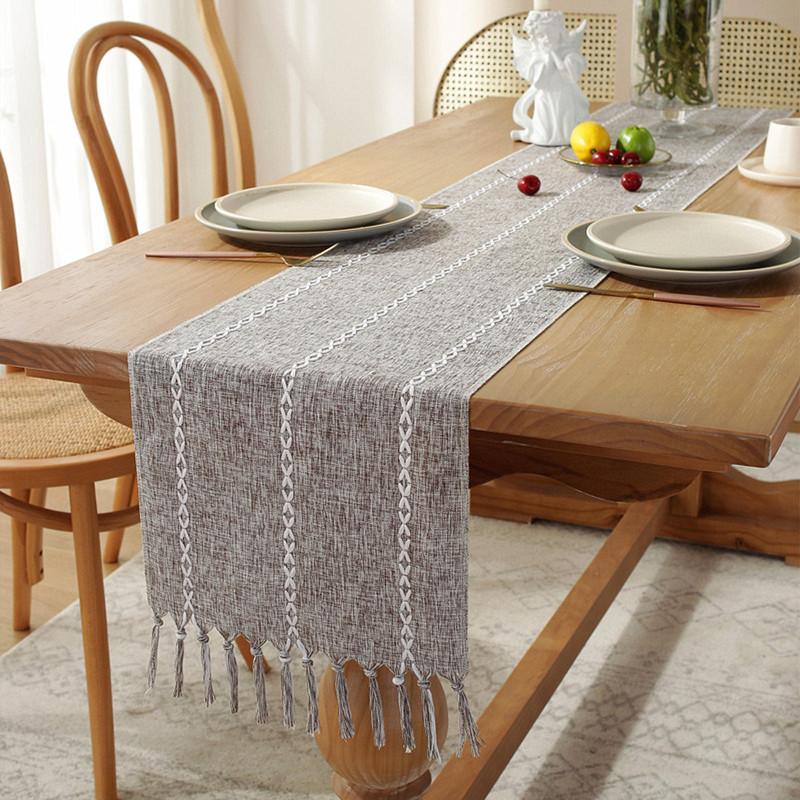 1. Современный дизайн table Runner: Настольная полозье с текстурой бохо выполнена из текстурированной меланж-тканой ткани с шикарным дизайном бахромы и простыми узорами вышивки, которые идеально сочетаются друг с другом.. Тканые скатерти идеально подходят для украшения свадебного стола в стиле бохо, а также идеально подходят для повседневной жизни, добавляя уникальный деревенский вид вашему домашнему декору.