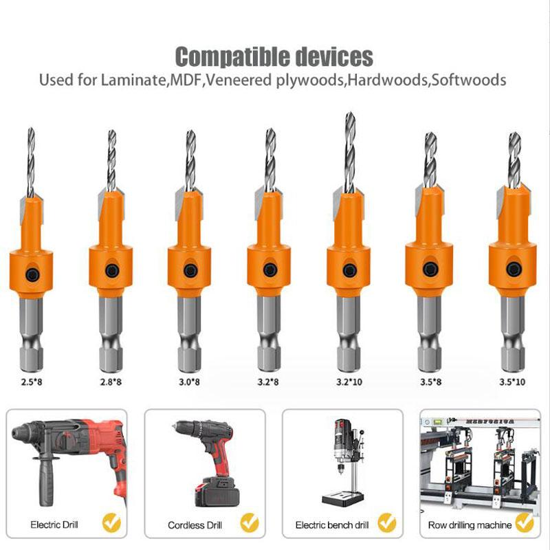 7 шт., шестигранный хвостовик HSS, деревообрабатывающий зенковочный фрезерный станок, экстрактор винтов, Remon, снос для фрезы по дереву