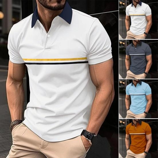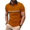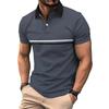 Летний мужской топ с отложным воротником, однотонный лоскутный полосатый принт, приталенный пуловер, мягкая дышащая пуговица, повседневная мужская футболка средней длины