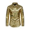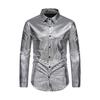 Мужская клубная рубашка с глянцевым отложным воротником и длинными рукавами, однобортная однобортная рубашка свободного покроя с пуговицами, костюм средней длины для сценического шоу
