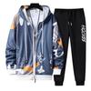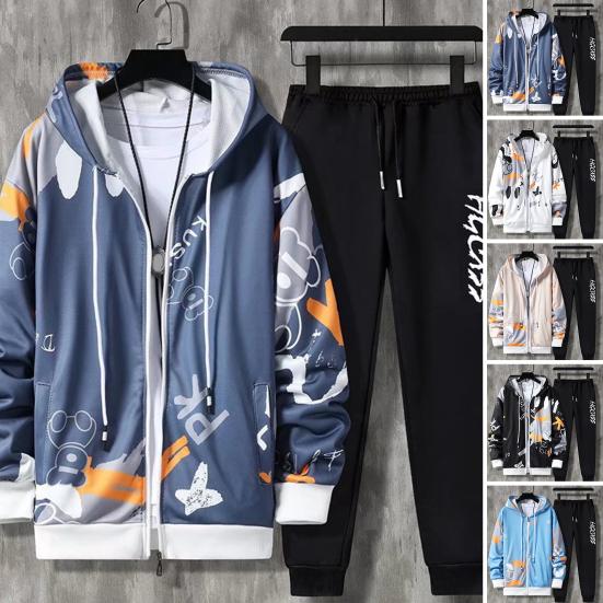 2 шт./компл., мужское пальто, брюки, костюм с капюшоном, буквенным принтом, застежкой-молнией, свободная эластичная талия, мужской спортивный костюм в стиле хип-хоп с ремешками на щиколотке