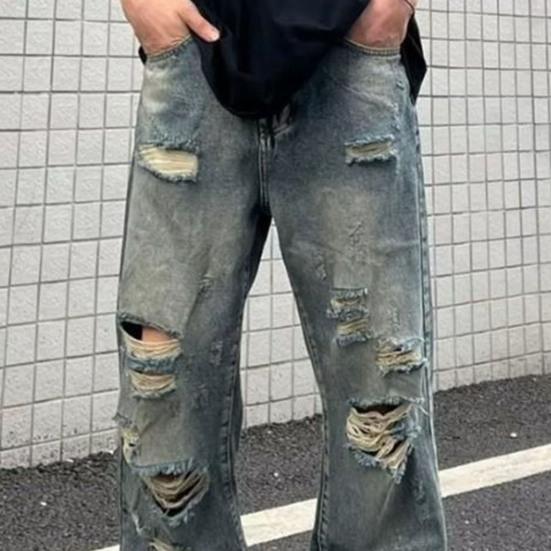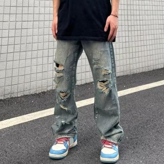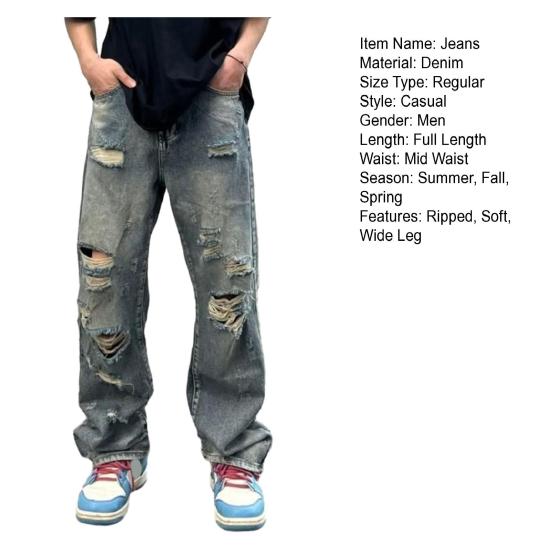 Представляем наши потертые рваные джинсы в стиле хип-хоп — идеальное дополнение к вашему гардеробу для создания крутого стиля хип-хоп.. Эти джинсы можно сочетать со свободной футболкой и классной курткой, что делает их универсальными для различных случаев, таких как повседневная жизнь, вечеринки, улица и школа..