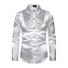 Рубашка на пуговицах с длинными рукавами имеет стандартный крой и глянцевый вид, который переливается цветом при движении, что идеально подходит для погружения в режим вечеринки..