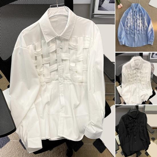 Однотонный цвет, воротник с лацканами и длинные рукава придают ему простой, но стильный вид, а полое плетение добавляет уникальный элемент дизайна..