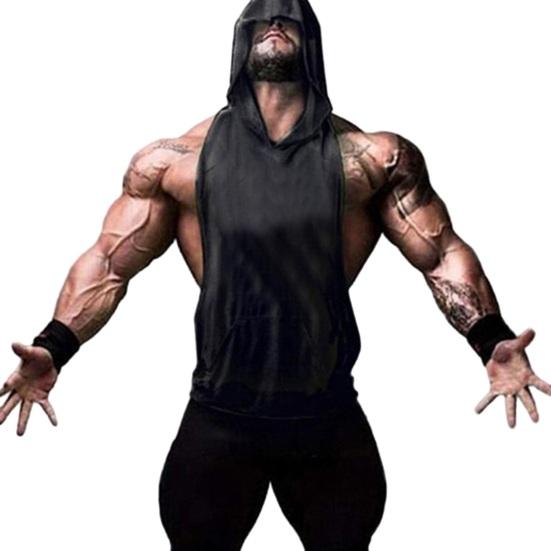 Мужской спортивный жилет без рукавов с капюшоном, однотонный, свободный, с глубокими подмышками, с большим накладным карманом, тренировочная майка для бега, бега — купить товар онлайн с бесплатной доставкой по всему миру!