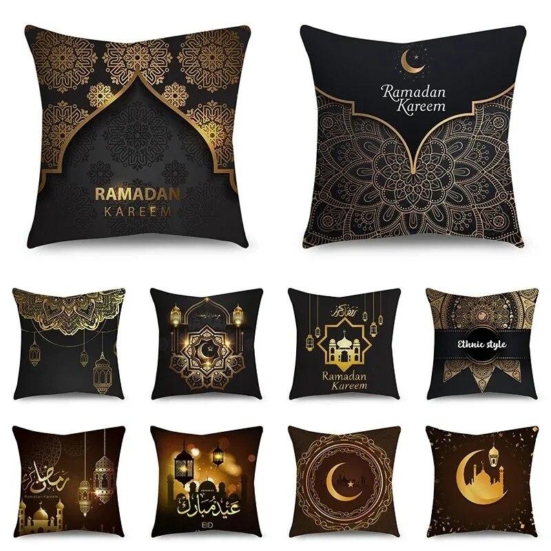 Чехол для подушки «Рамадан», исламский Ид Мубарак, черное золото, наволочка для подушки, домашний декор, декоративная наволочка для дивана, 45 см * 45 см