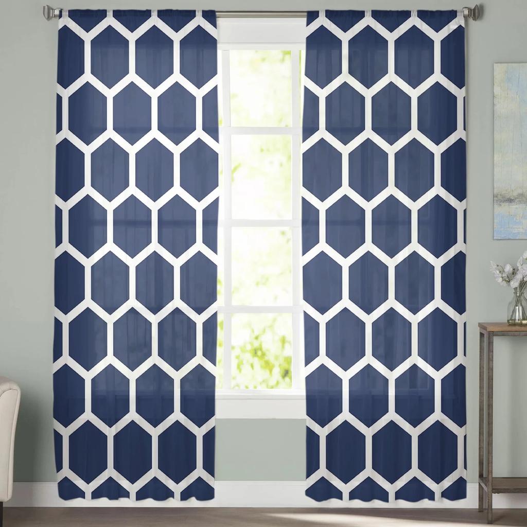 Тюлевые шторы в стиле ретро с геометрическим рисунком для гостиной, спальни, прозрачные занавески для балкона, зала, модные домашние шторы с принтом