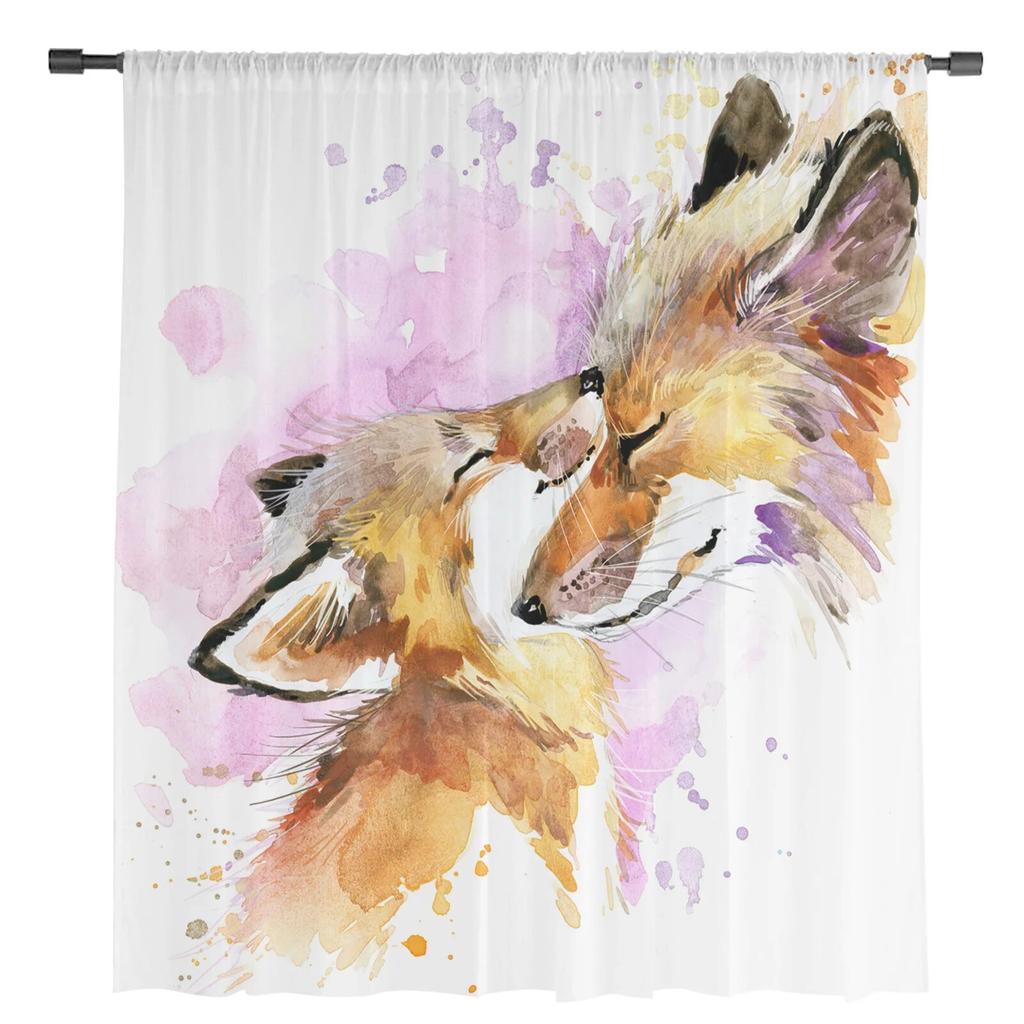 Тюлевые шторы с акварельной лисой, отцом, любовью для гостиной, прозрачные современные шторы для окон, декор для спальни