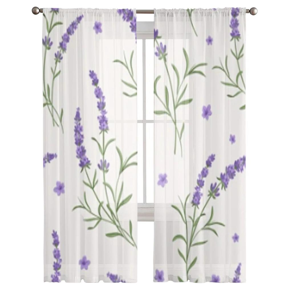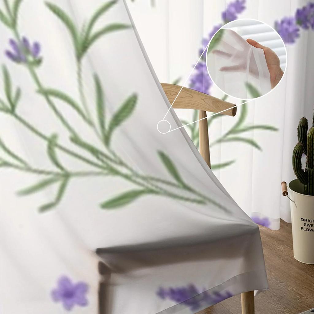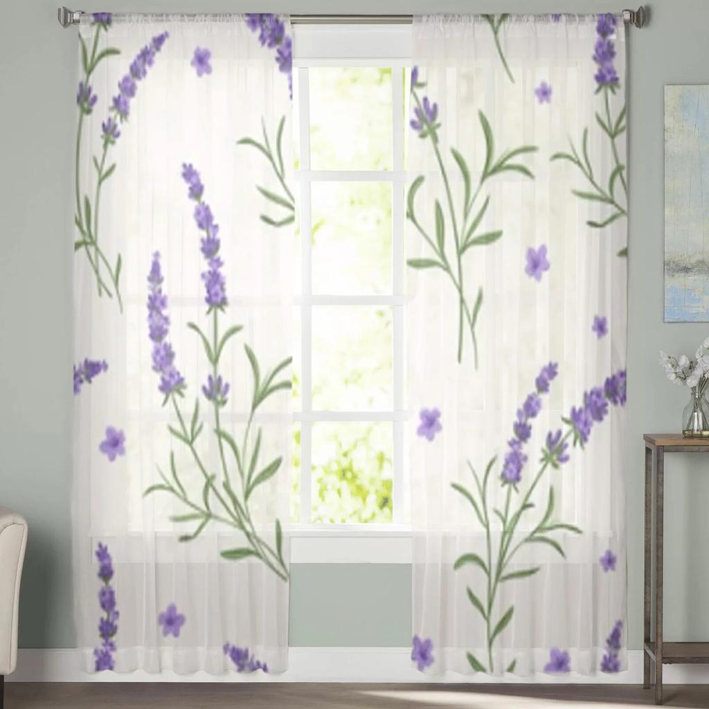 Красивые винтажные прозрачные шторы с цветами лаванды для гостиной, спальни, кухни, тюлевые занавески, декоративные прозрачные панели для дома