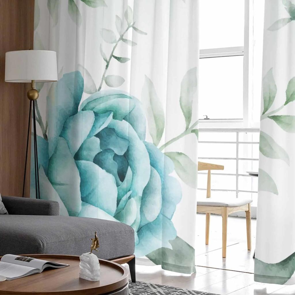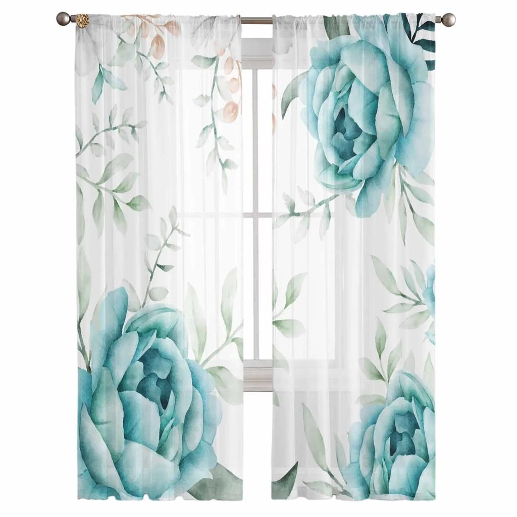 Растительный цвет, акварель, натуральный Тюль, вуаль, шторы для спальни, гостиной, оконная занавеска, прозрачные шторы из органзы