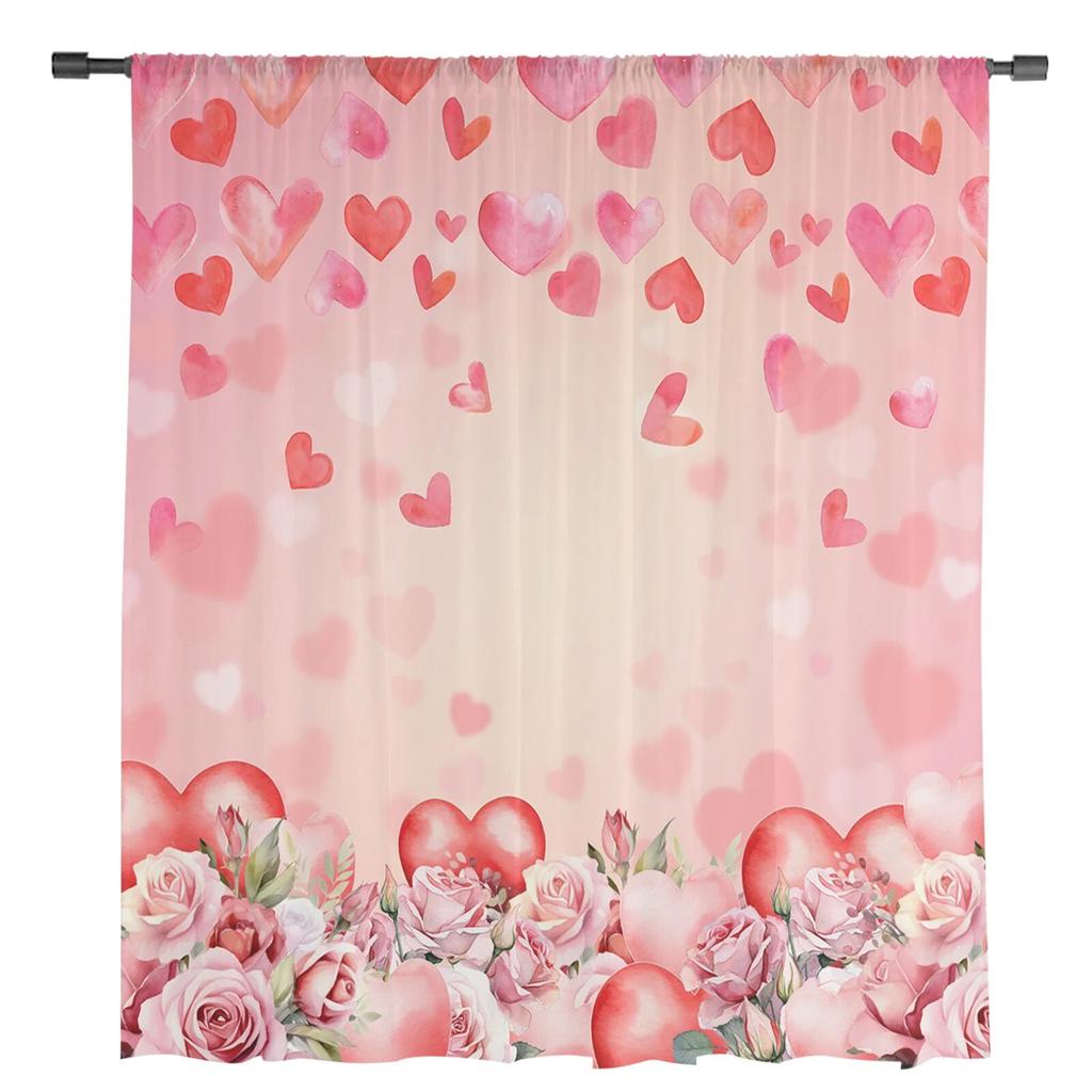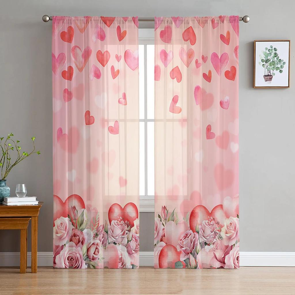 День святого Валентина Любовь Цветок Роза Акварельные Прозрачные Шторы Гостиная Спальня Вуаль Занавеска Для Окна Балкон Кухня Тюль Портьеры