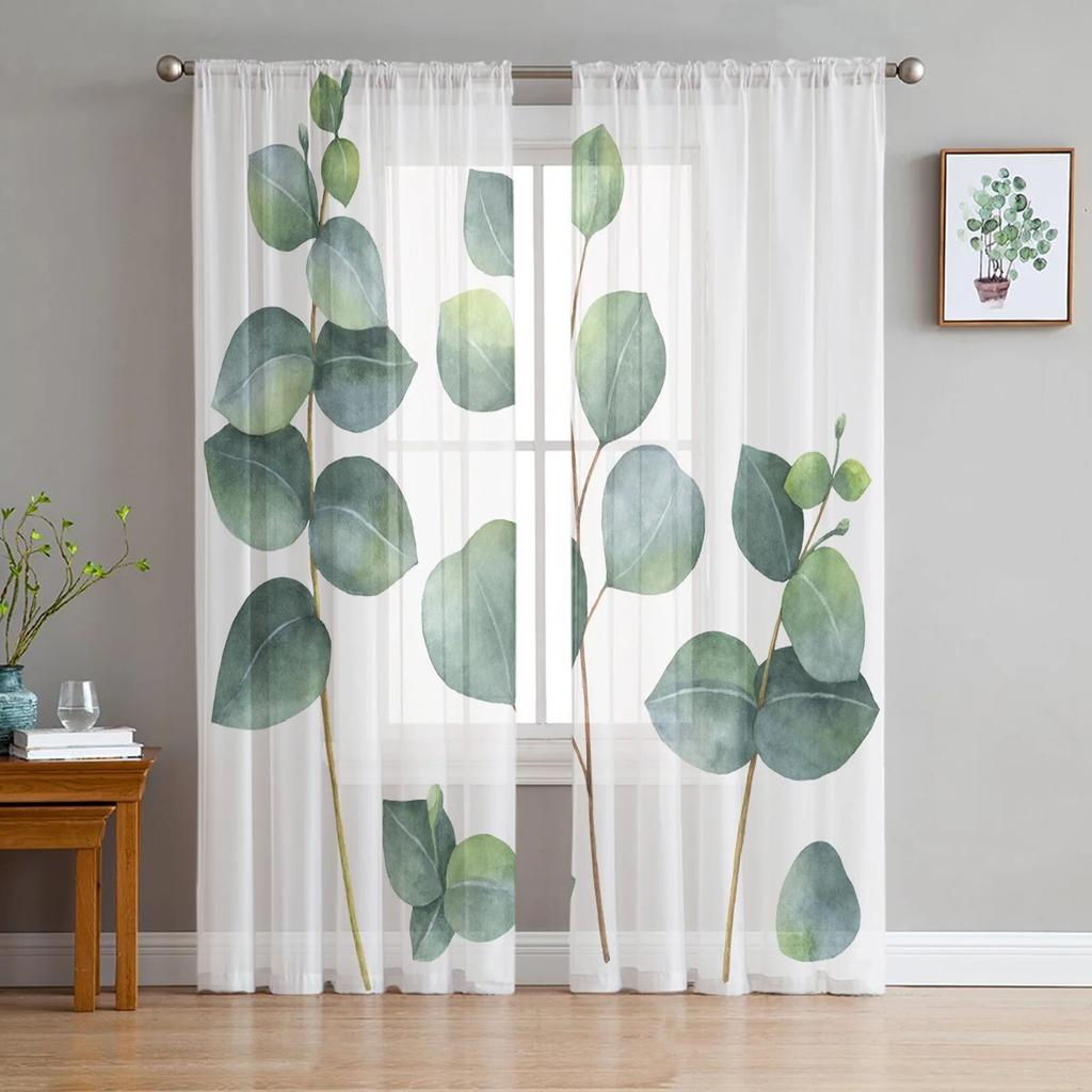 Акварельные листья, художественные прозрачные шторы для спальни, гостиной, вуаль, оконные шторы, тюлевые шторы для детской комнаты