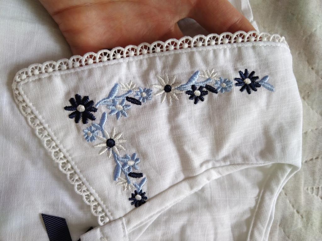 Блузка супер. Хлопок. Пошита качественно, ниток торчащих нет. Запаха нет. Ткань совсем чуть-чуть просвечивает. Вышивка аккуратная. Резинки в рукавах не тугие. Нам очень понравилась. Спасибо!
