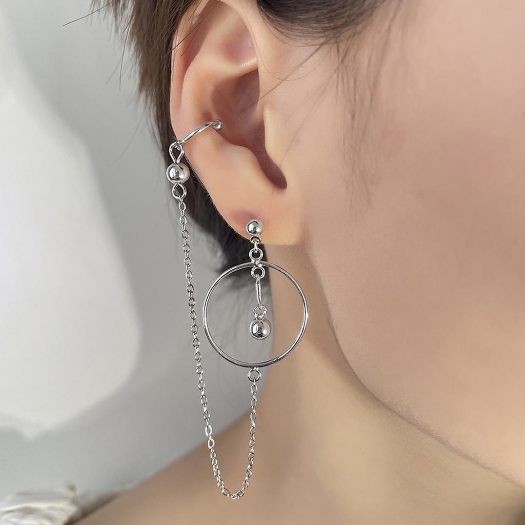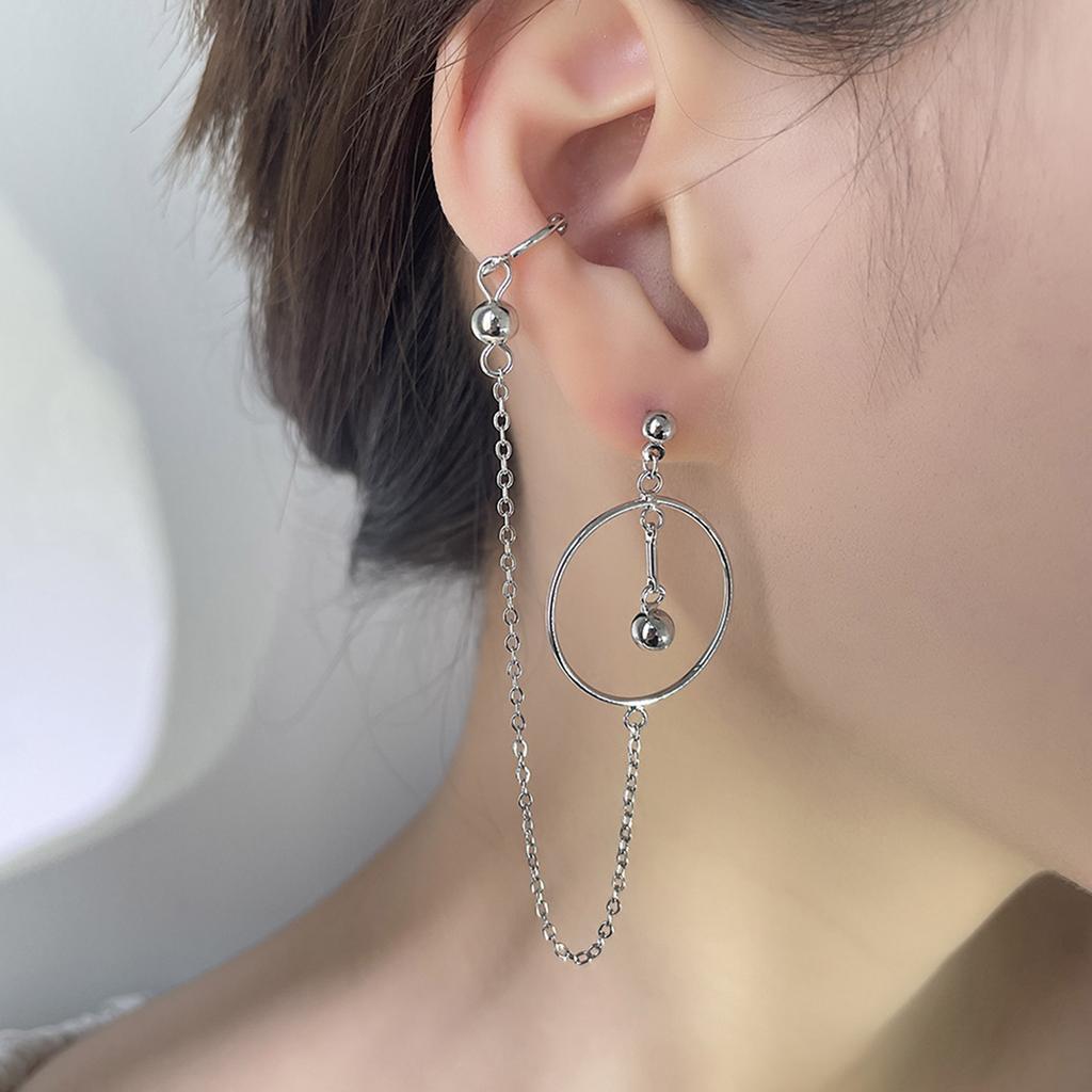 Уникальные круглые серьги с геометрическим рисунком, модные серьги-каффы с звеньями цепи, геометрические круглые кольца, легкий аксессуар для ушей