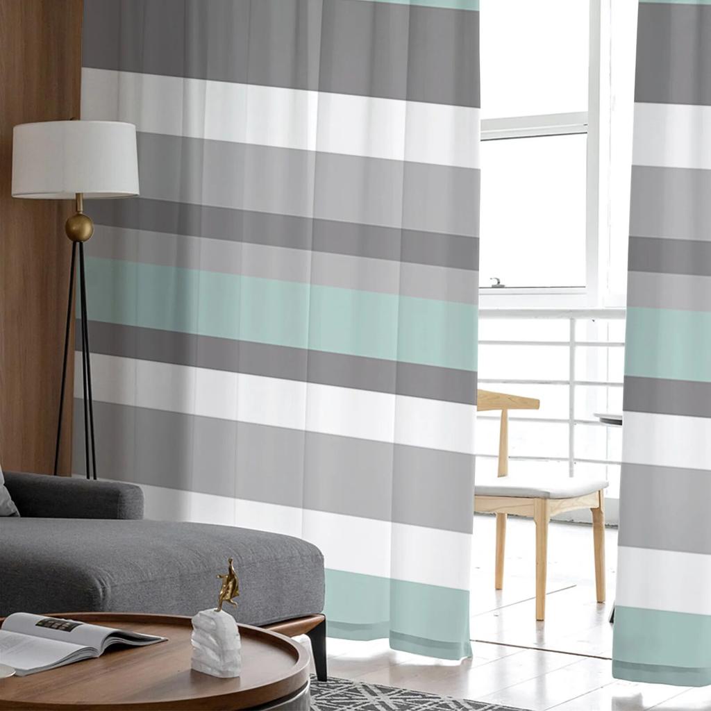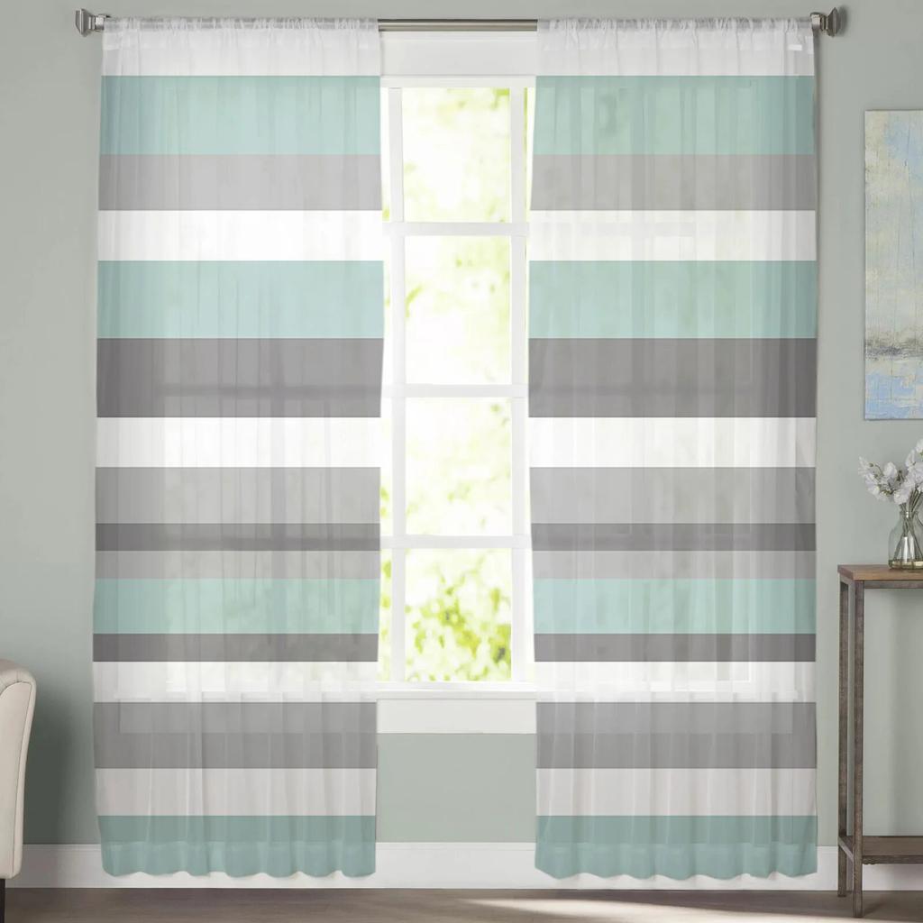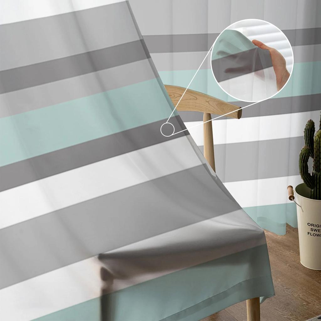 Тюлевые шторы в сине-серую полоску для гостиной, кухни, спальни, прозрачный тюль для кафе, отеля, современный домашний декор