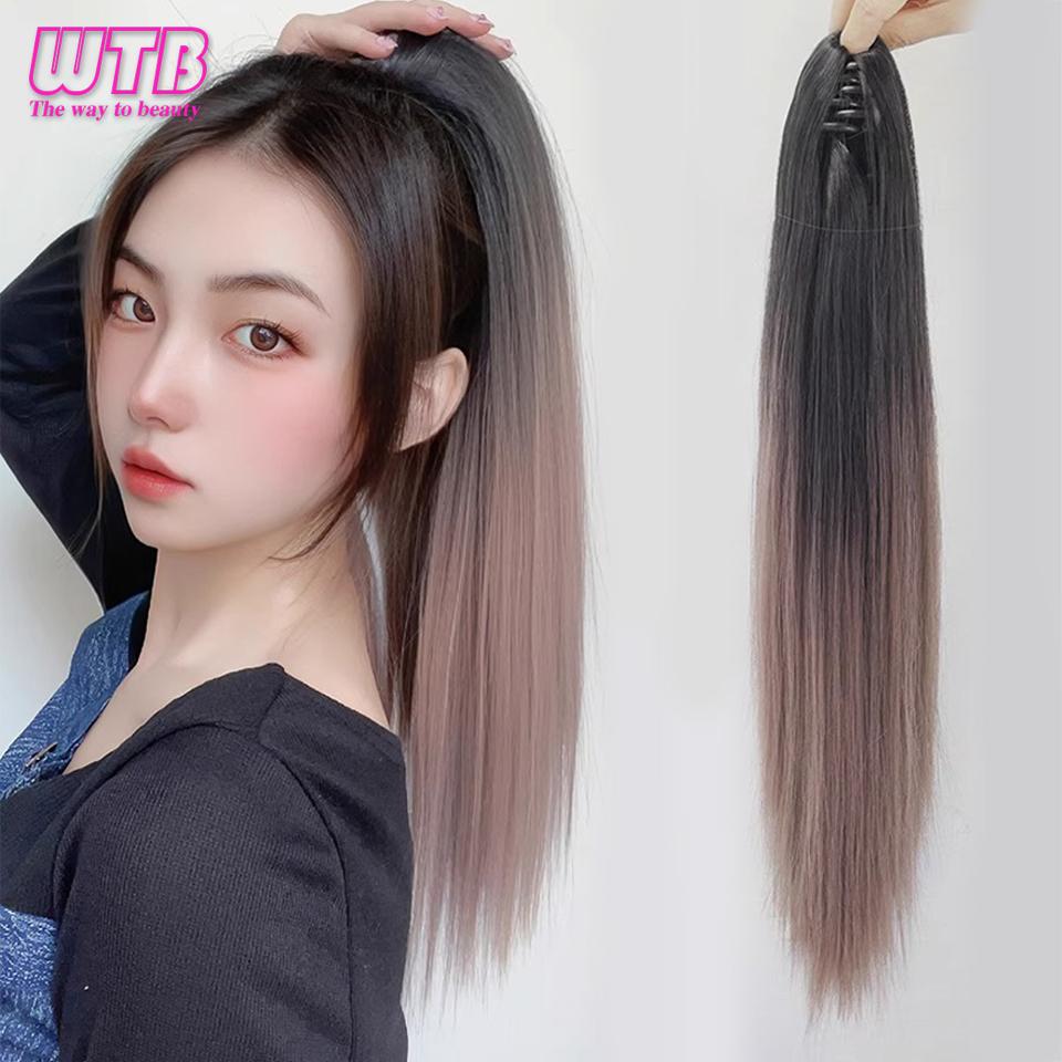 WTB синтетический длинный прямой парик из натуральных волос, конский хвост, женский натуральный градиент, высокий хвост, пушистый парик для наращивания волос