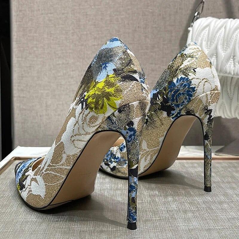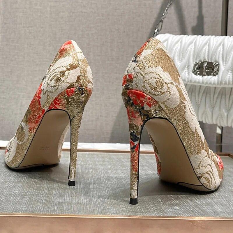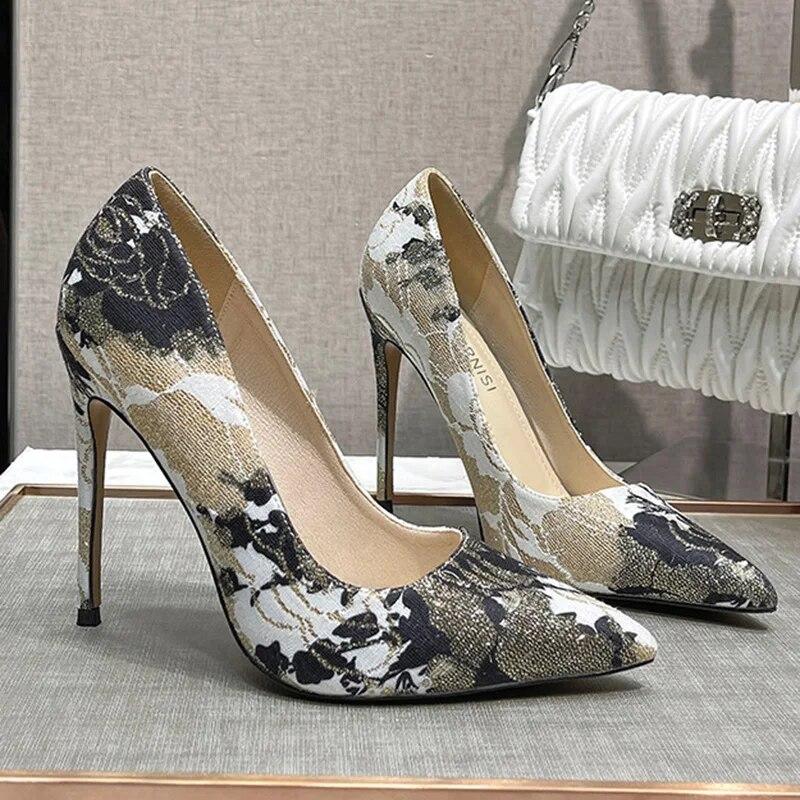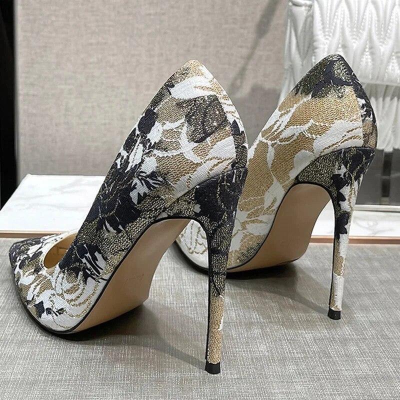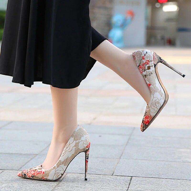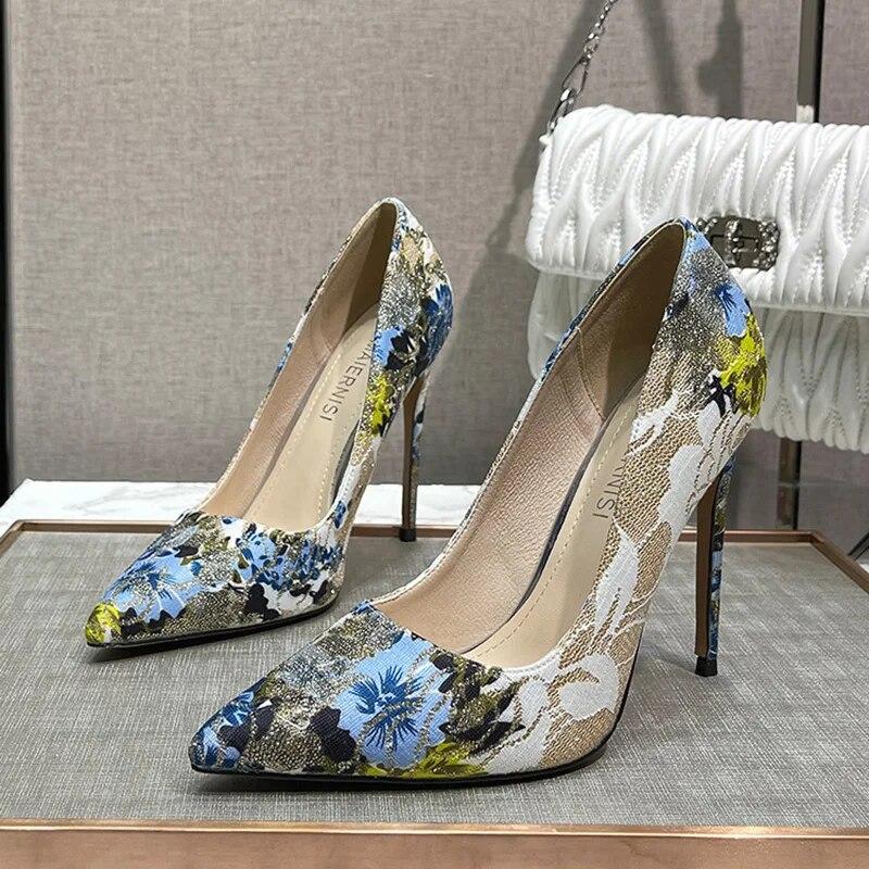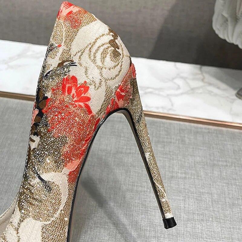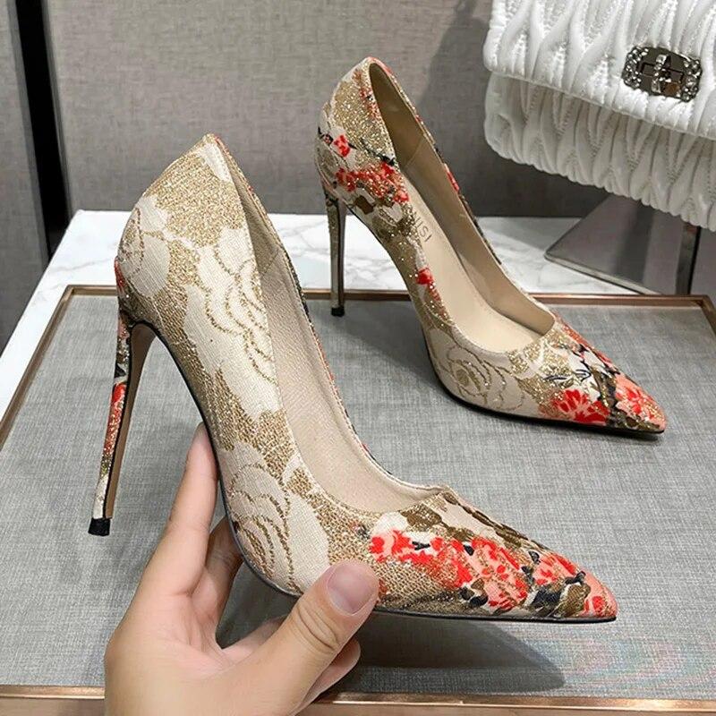 Женские туфли-лодочки, женские туфли на шпильке, туфли-лодочки с острым носком, пикантные вышитые туфли на каблуке 12 см WZ