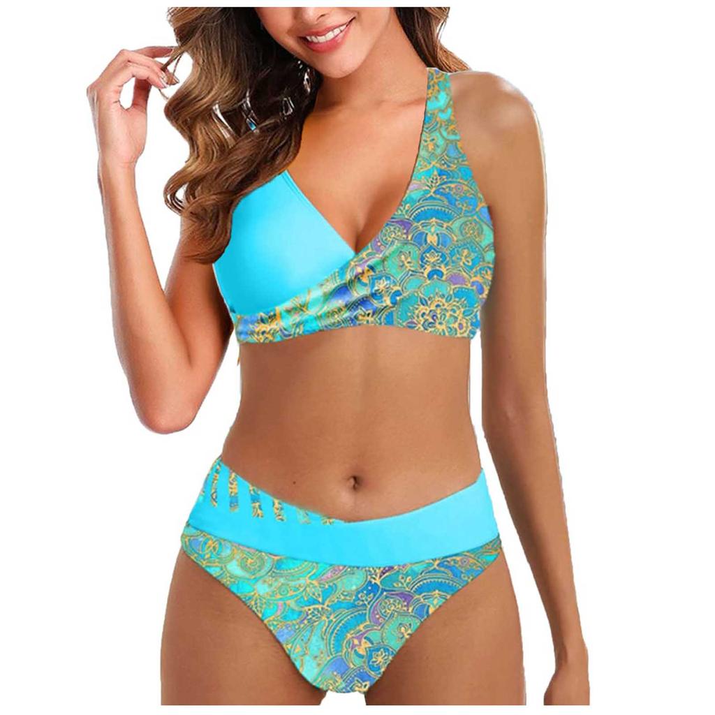 Женское модное бикини с разрезом и высокой талией, с подушечками для бюстгальтера и без стального купальника с бюстгальтером