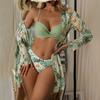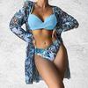 Женский бикини с цветочным принтом, сексуальный быстросохнущий купальник, комплект из 3 предметов