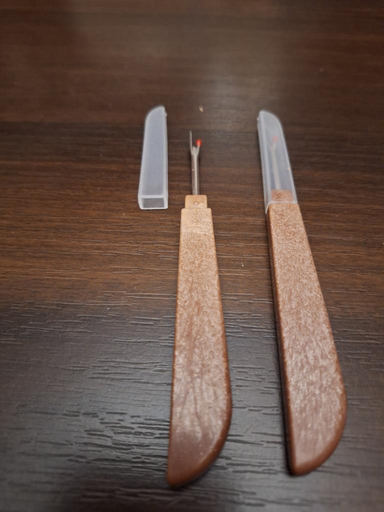 Резак для распарывая швов одежды, очень острые, имеется защитный прозрачный пластиковый колпачок, ручка скорее всего деревяная, очень качественная и гладкая. В заказ входит ДВА резака.