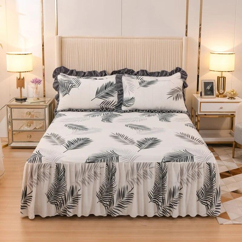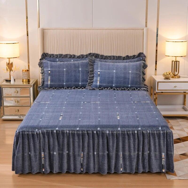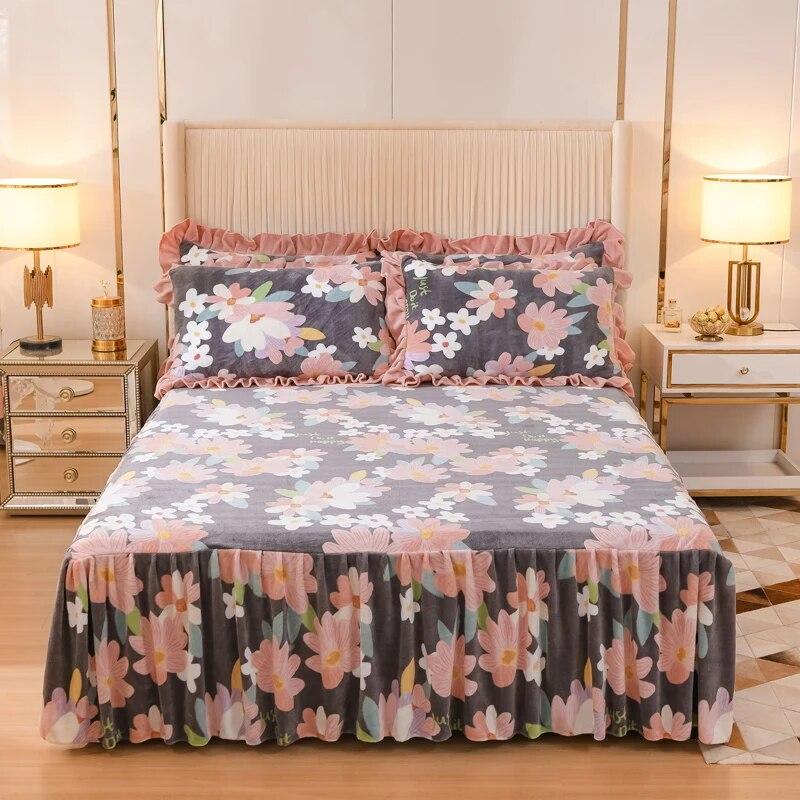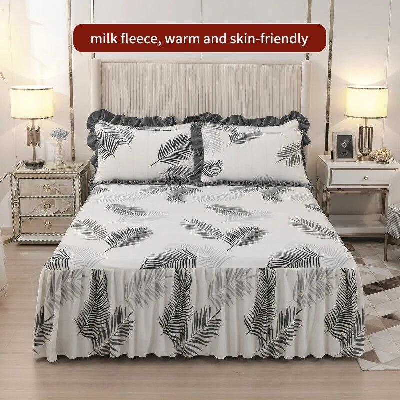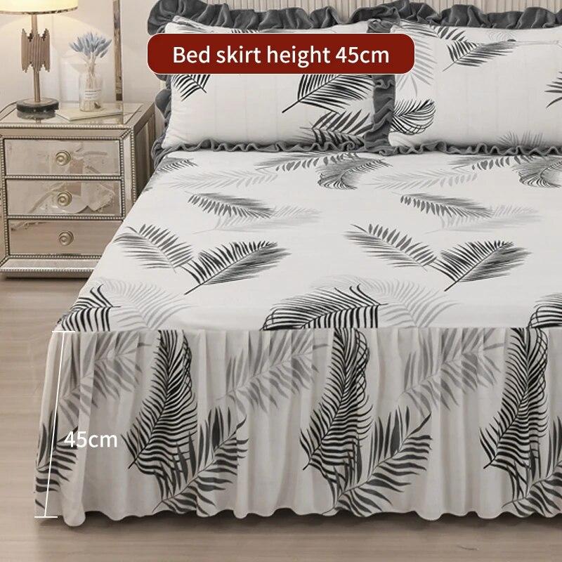Юбка-кровать из молочного бархата с принтом, толстый и теплый наматрасник, отделка спальни, плотная ткань