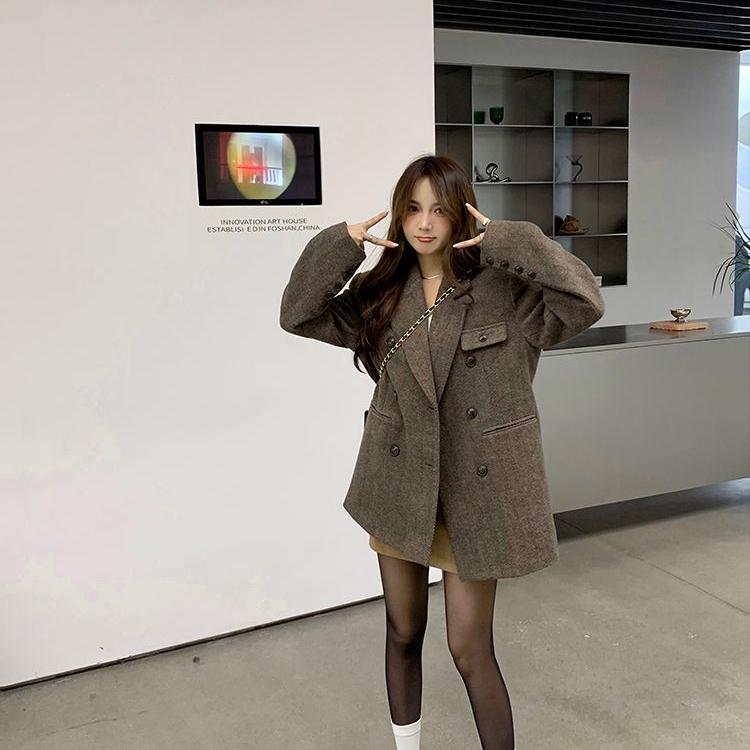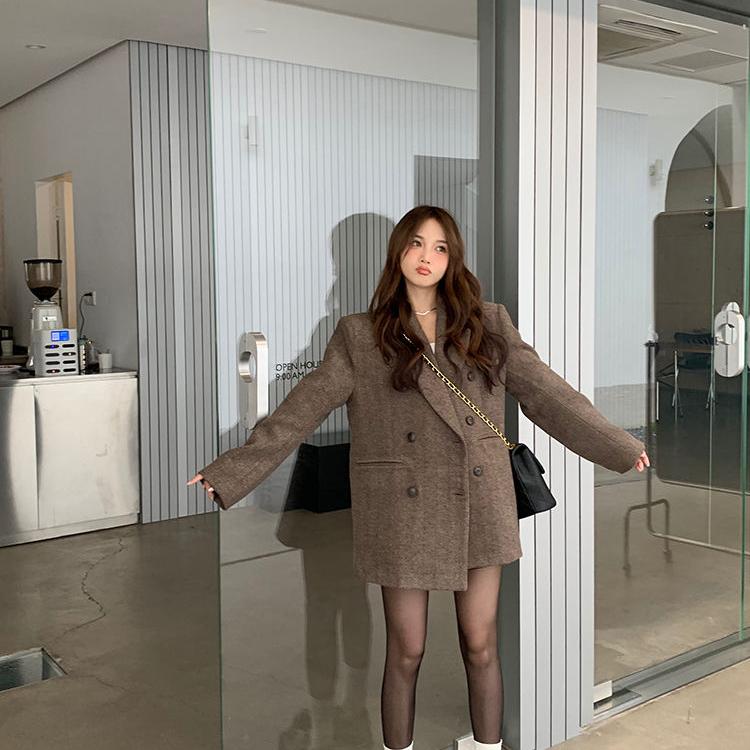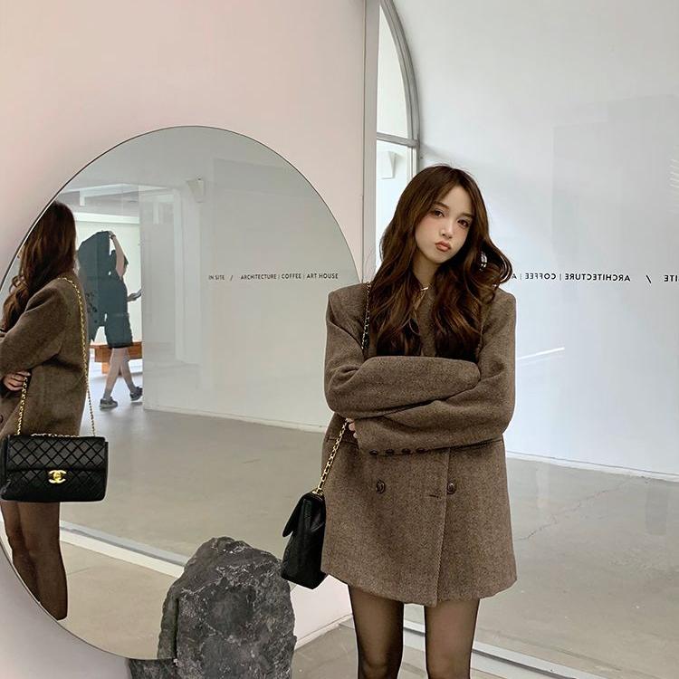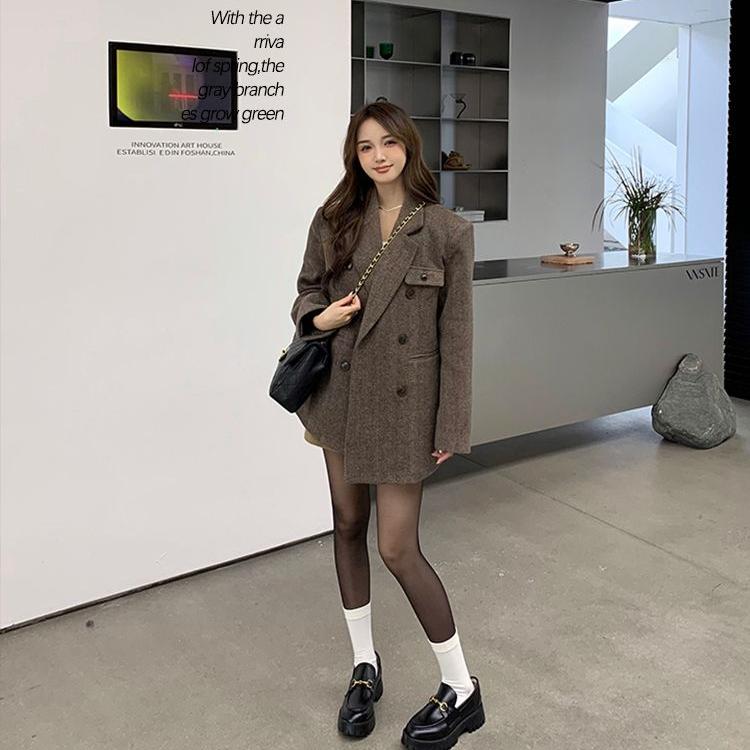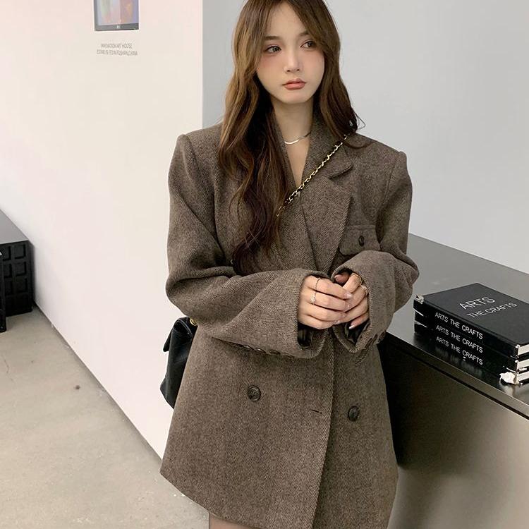 Женское длинное пальто с воротником с лацканами, полушерстяная куртка, плащ