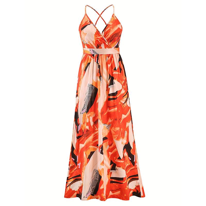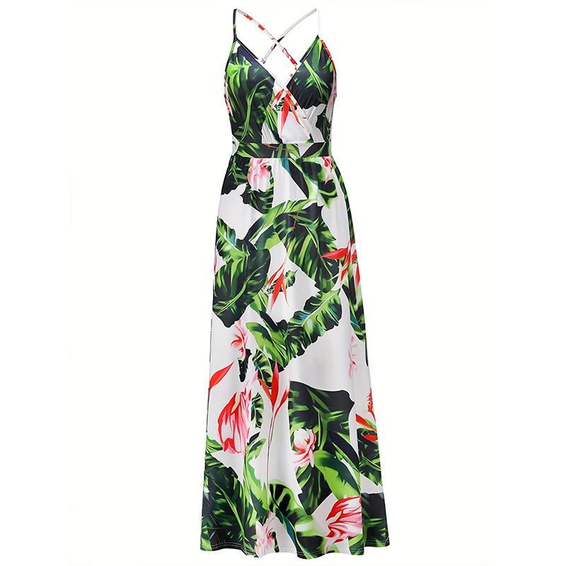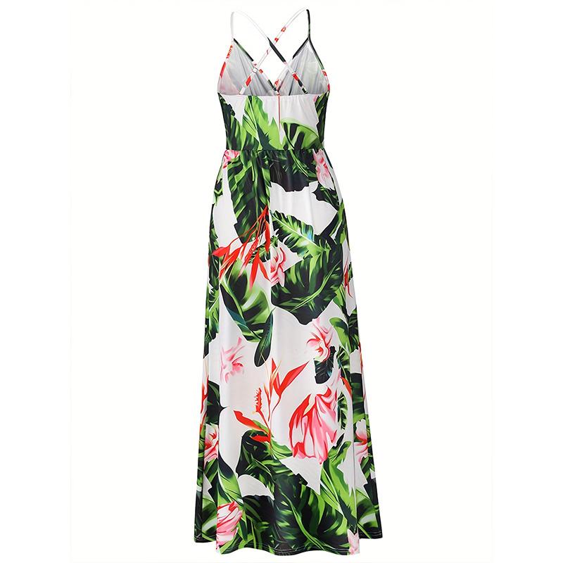 Женское летнее пляжное платье в богемном стиле с открытой спиной и бретельками цельное платье