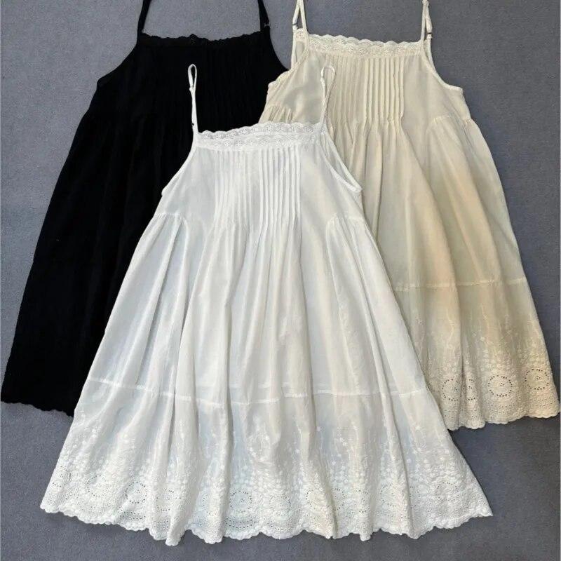 Johnature Весенне-летнее хлопковое плиссированное платье-комбинация с вышивкой снизу, многослойные повседневные женские платья Mori