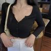 Черный обтягивающий тонкий сексуальный спортивный кардиган с длинным рукавом, весенний женский дышащий топ с v-образным воротником для бега
