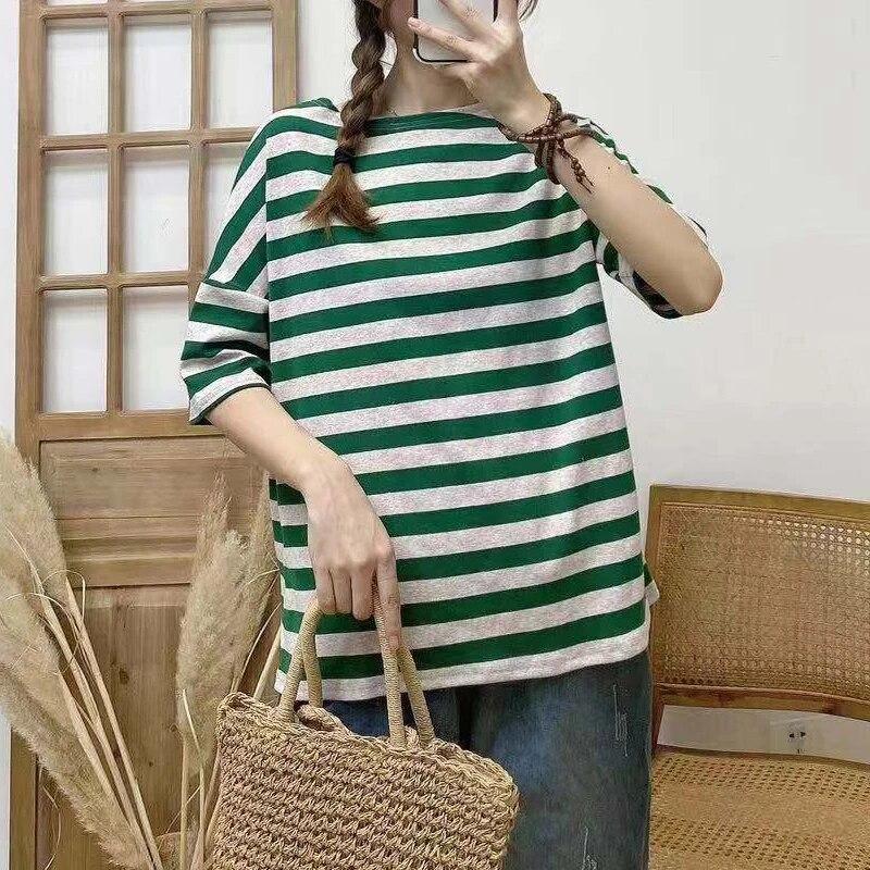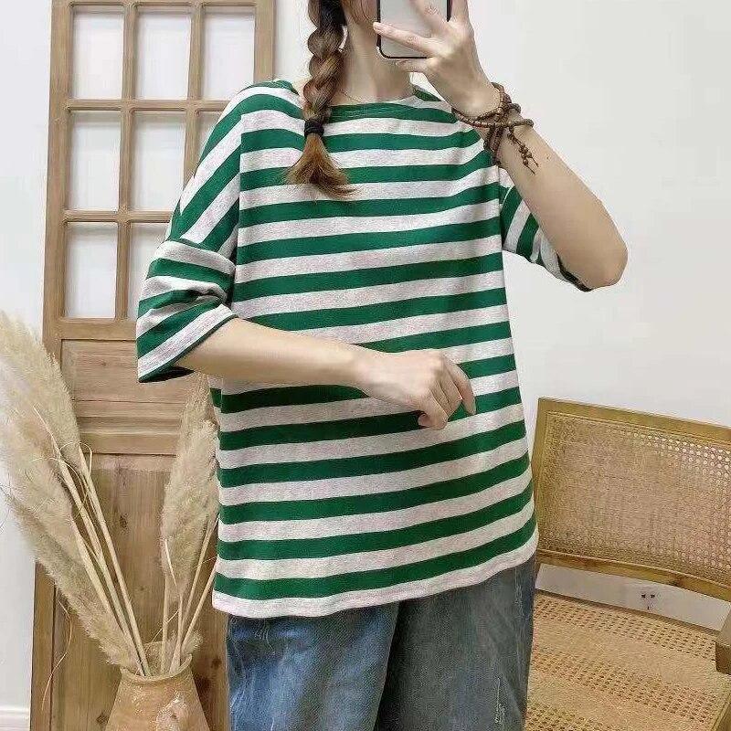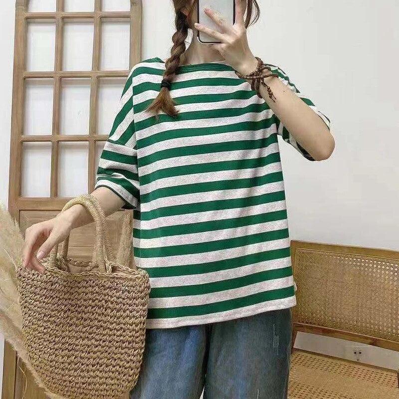 Johnature Повседневные полосатые женские топы, летние свободные женские футболки с круглым вырезом и коротким рукавом, простой пуловер