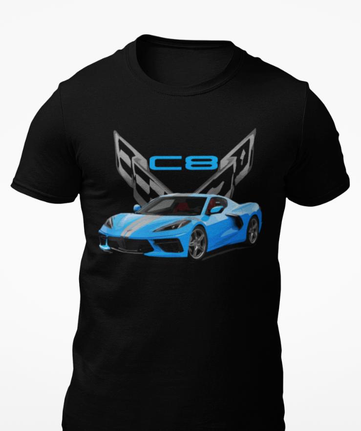 Футболка унисекс с короткими рукавами Mid Engine Rapid Blue Corvette C8 2020