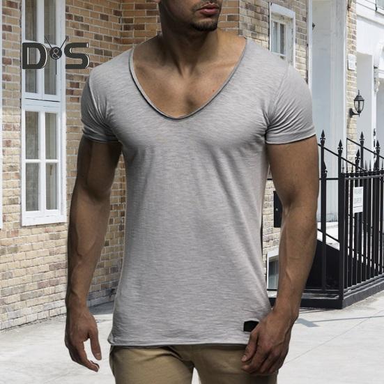 Мужская летняя футболка с короткими рукавами и v-образным вырезом, однотонная, мягкая, приталенная, дышащая, эластичная, средней длины, повседневный пуловер, мужской спортивный топ — купить товар онлайн с бесплатной доставкой по всему миру!