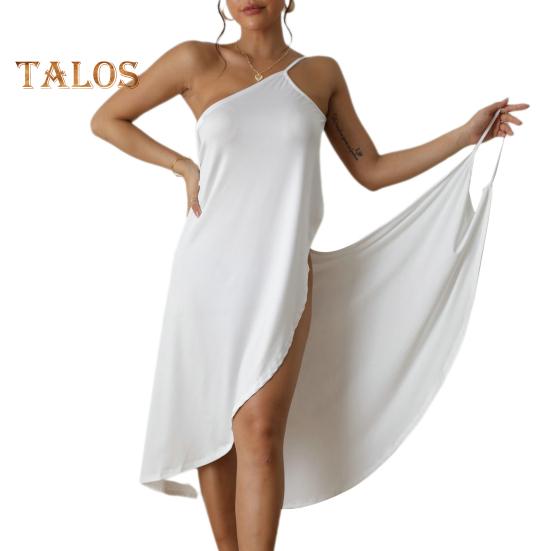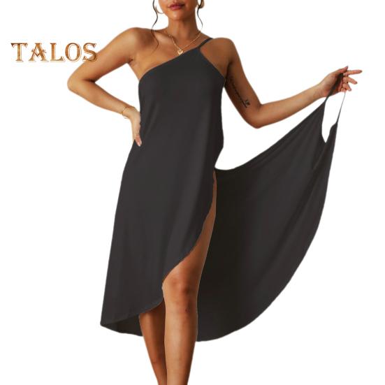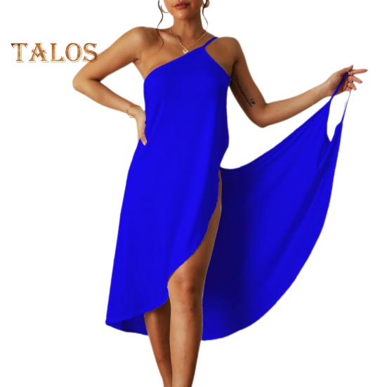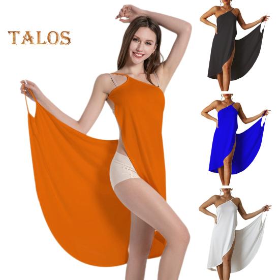 Он имеет открытые плечи, открытую спину, несколько способов ношения, V-образный вырез, свободный крой средней длины, и его можно использовать в качестве прикрытия для купальника.