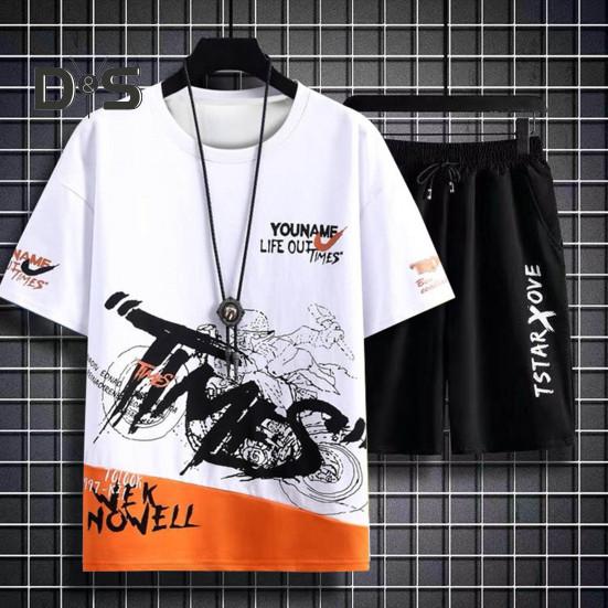 Мужской комплект летней спортивной одежды из 2 шт./компл., футболка с коротким рукавом и эластичным шнурком на талии, широкие шорты, комплект, повседневная одежда с буквенным принтом — купить товар онлайн с бесплатной доставкой по всему миру!