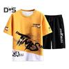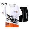 Мужской комплект летней спортивной одежды из 2 шт./компл., футболка с коротким рукавом и эластичным шнурком на талии, широкие шорты, комплект, повседневная одежда с буквенным принтом
