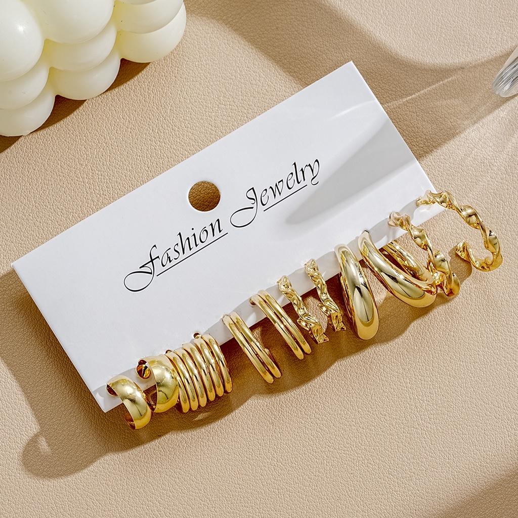 6 пар ретро многослойных серег-кольцов, золотые круглые серьги для женщин, ювелирные аксессуары