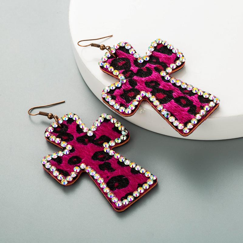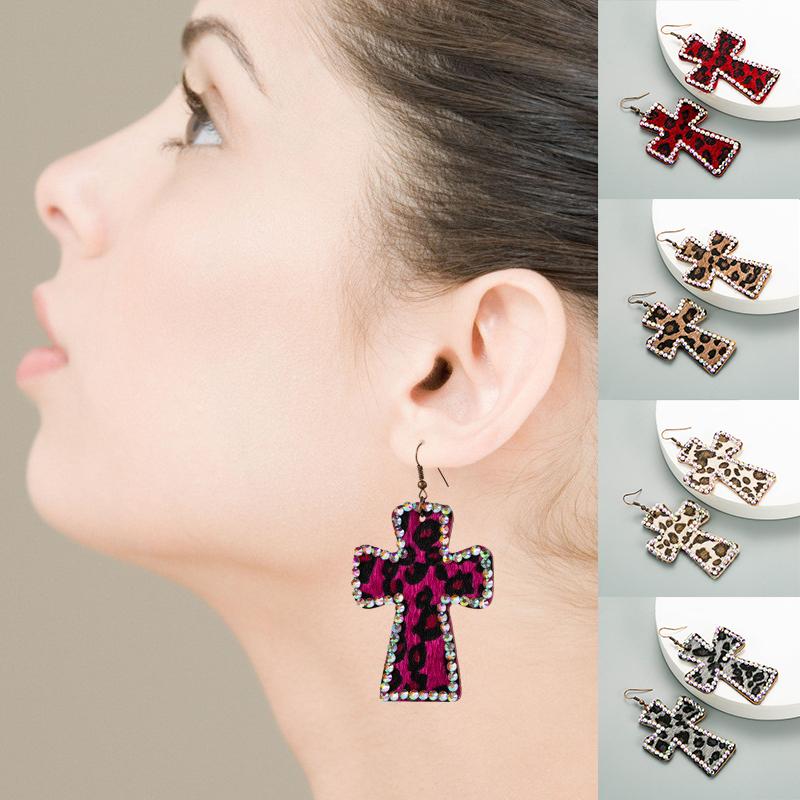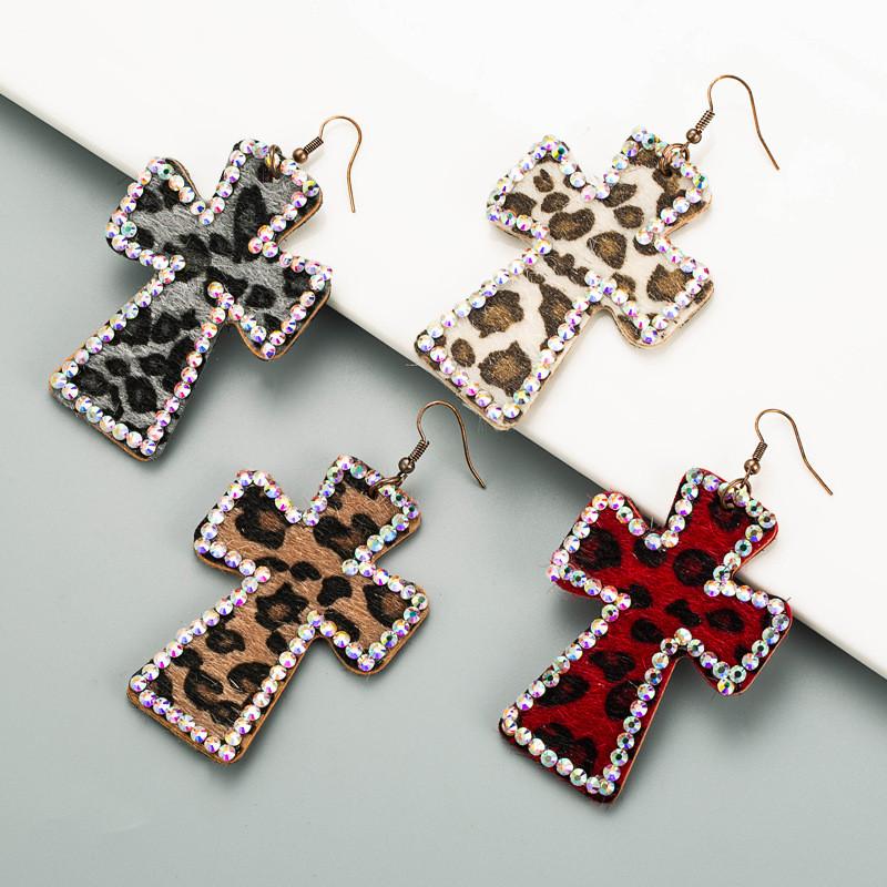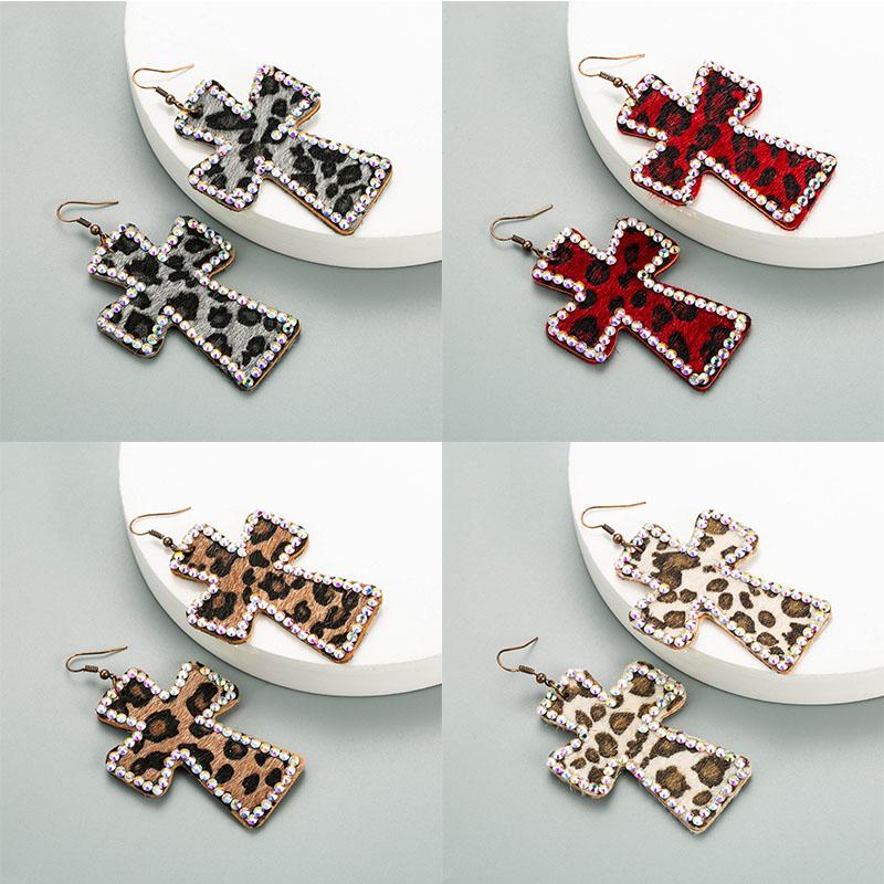 Серьги с леопардовым принтом Серьги из натуральной двусторонней печати Крестообразная кожа Ретро