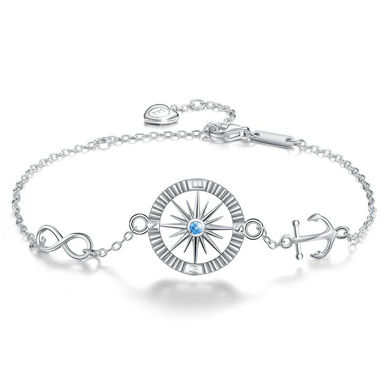 S925 Серебряный браслет с компасом и якорем для женщин в Европе и Америке, простые круглые женские браслеты — купить товар онлайн с бесплатной доставкой по всему миру!