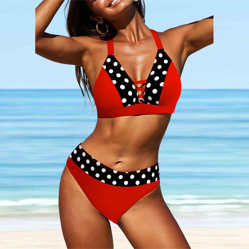 Женский купальник с бретелями, темно-синий с узором и принтом, бикини, купальник-танкини
