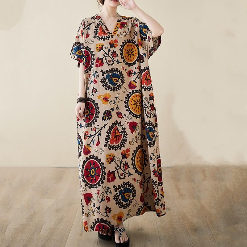 Новое хлопковое винтажное платье с цветочным принтом больших размеров с короткими рукавами для женщин, повседневное свободное длинное летнее платье макси — купить товар онлайн с бесплатной доставкой по всему миру!