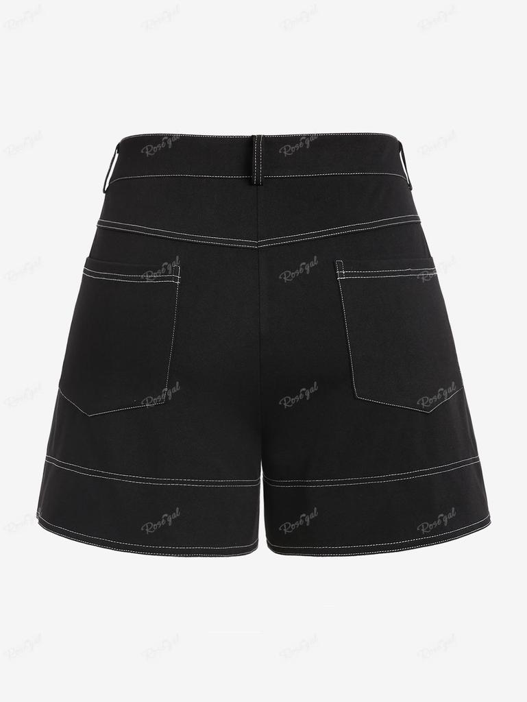 Rosegal Большие размеры Широкие шорты с высокой талией и отстрочкой